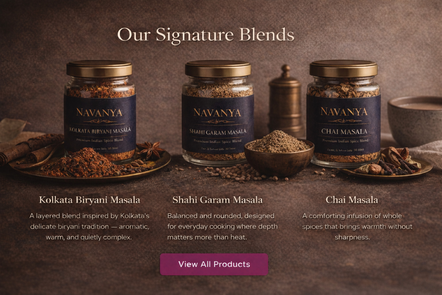 Navanya was created to honour the depth of Indian cooking — not overpower it.